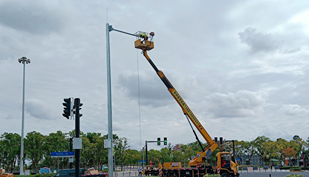 采用AI結構化云臺攝像機、12米桿件,實現(xiàn)大面積高空監(jiān)控路線,并確保路線追蹤功能,可監(jiān)視大客流配合紅綠燈信號機來有效緩解大客流問題